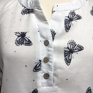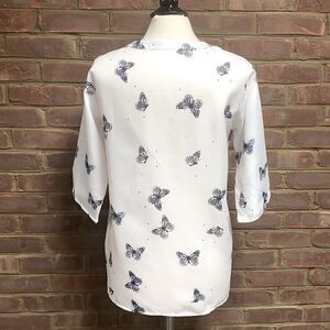 MissLook White Butterfly 3/4 Sleeve Blouse Size Small