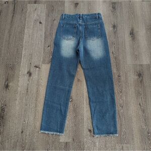 MissLook women's high waist printed floral blue jeans raw hem size Small