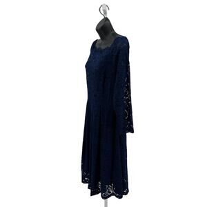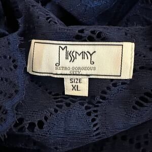 MissMay Retro Gorgeous Swing Dress WMNs XL Navy Floral Lace Long Sleeve Pleated