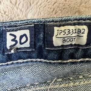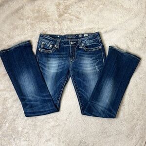 Miss Me Embellished Distressed Boot Cut Blue Jeans - Size 30
