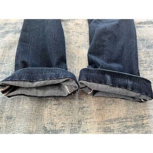 Boot cut jeans from Miss Me with whiskering and fading on the seat and thighs. Decorative studding, rhinestones, and embellished back pockets. Zip fly, classic 5 pocket styling. Excellent condition, but these jeans have been hemmed. Originally a 34" inseam, they now have a 30" inseam. Please see photos for close up of hemming.