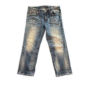 Miss Me JPB5014 Boyfriend Jeans Women Sz 31 Embroidered Rhinestone Western Boho
