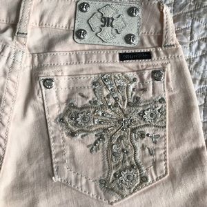 Cream colored pants. Jean material. Little bit of bling on the pockets as with any MissMe pair.