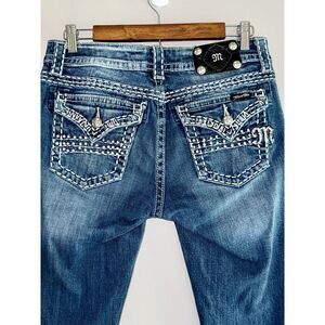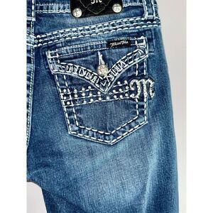 Miss Me Jeans Easy Capri Flap Pockets Thick Stitch Western Rhinestone Stretch 28