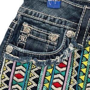 Miss Me Signature Denim Shorts Embroidery & Sequins Size 27
