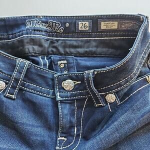 MissMe Women's Blue Denim Signature Boot Cut Altered Bottoms Jeans Size 26