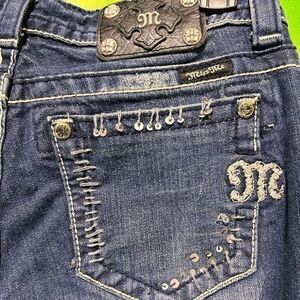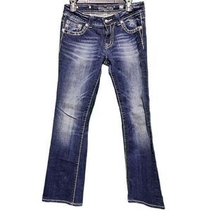 Miss Me Women's Bootcut Jeans Faded Embroidered Bling Pockets Blue Size 29