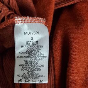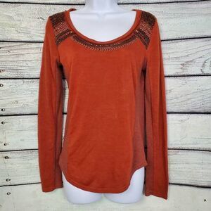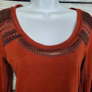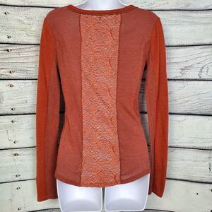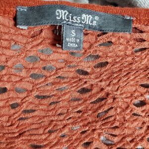 Miss Me Women’s Burnt Orange Long Sleeve Knit Top S Sheer Crochet Accents