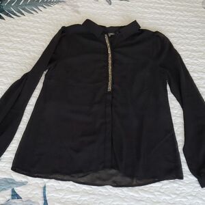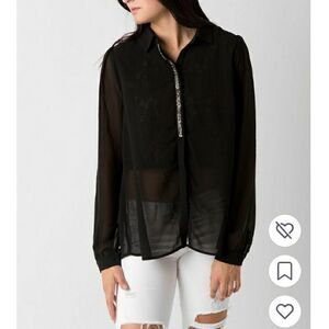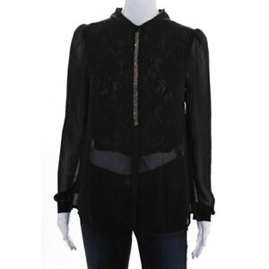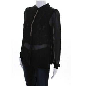Miss Me Womens Lace Cropped Sheer Button Down Blouse