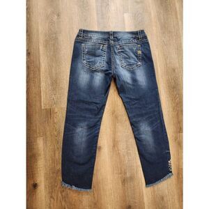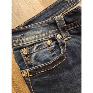 Miss Me 'skinny' aztec embroidered womens 31x27 medium wash multicolor. good pre-owned condition no stains no holes measurements provided in pictures are approximate please check measurements for proper fit as size can vary from age and washing