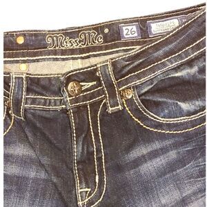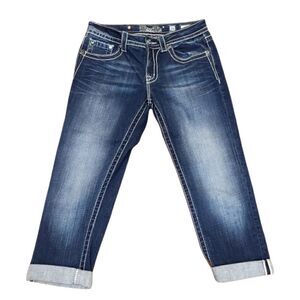 Miss Me Embellished Boyfriend Capri Jeans Fleur-De-Lis Design JB5692P5 | 26 | EUC | MSRP $99 | Whiskering, Medium Wash | Measurements Laying Flat: Waist 15" | Drop 9" | Inseam 24" Uncuffed /21" Cuffed