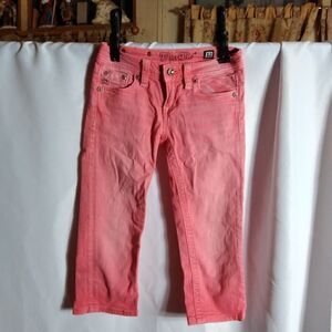 Salmon colored Miss Me Capri jeans with lots of bling. Youth size. Waist 13" length 18". DD