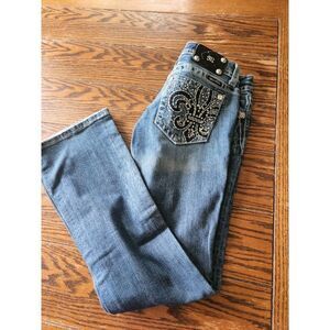 Miss Me fleur-de-lis pocket bootcut jeans sz 28x32