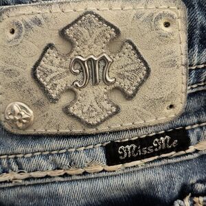 Med wash distressed jeans. Great pre-owned condition. Size is 27 inseam 33 . Well worn.
