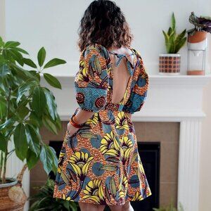 This pattern offers a versatile design suitable for creating tailored dresses. Features include puff sleeves, a flattering V-neckline, and customizable length options.