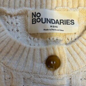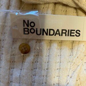NWT, No Boundaries from Walmart: cream color, 3-buttons, 93% recycled polyester, 3% spandex, 4% other fibers