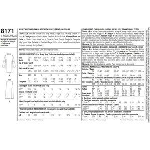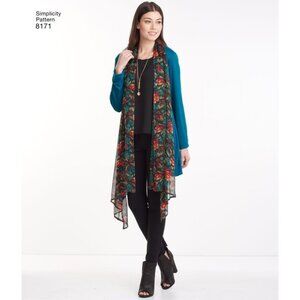 Misses Knit Cardigan Vest Pattern Draped Front Collar Simplicity 8171 XXS-XXL