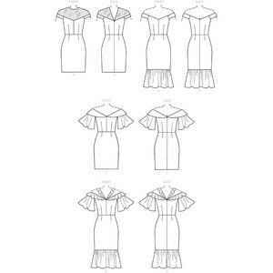 A versatile sewing pattern for creating elegant ruffle dresses with off-the-shoulder designs. Features customizable combinations for unique styles and fits.