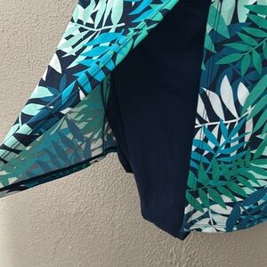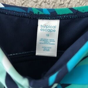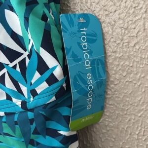 Misses Tropical Escape One Piece Flyaway Swimdress, Size 12, Blue/White/Green