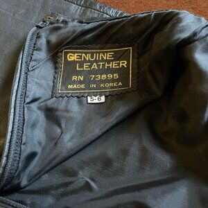 Misses vintage leather mini skirt, size 5-6. Measurements included in pics. Very cute piece. No rips or stains or tears. Comes from a smoke free pet free home. Please see pictures for more details and please ask questions prior to committing to purchase. Thank you.