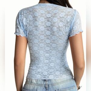 Y2K Sexy Lace Trim Crew Neck Slim Fit Short Sleeve T-Shirt
