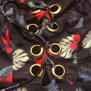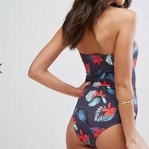 Missguided ASOS Brand Exclusive Tropical Print Lace Up Strapless Swimsuit 6