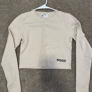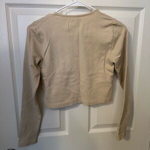Beige ribbed top with long sleeves. Features Missguided label.