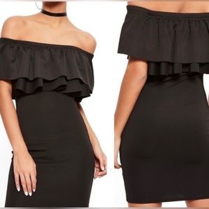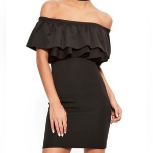 Missguided Black Bardot Scuba Ruffle Mini Dress