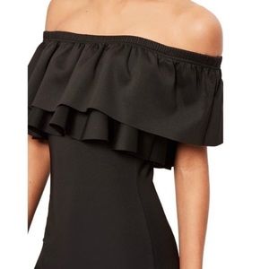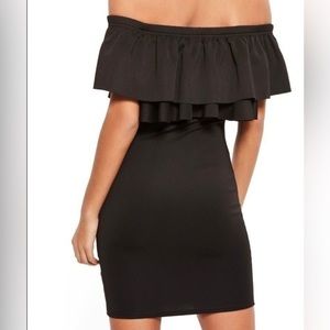 Missguided Black Bardot Scuba Ruffle Mini Dress Nwt (Nordstrom) Us Size 10