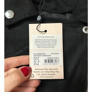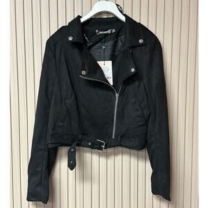 Missguided Black Crop Suedette Biker Jacket Women’s Size 4