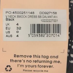 Missguided Black Dalmatian Print V Neck Smock Dress size 0