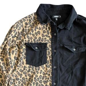 Missguided Black & Leopard Print Button-Up Shirt – Size US 8