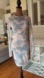 Chic long sleeve dress with blue butterfly design. Soft cream background. Ideal for stylish outings.