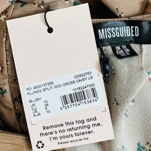 This Missguided Brown Floral Plunge Split Midi Dress in Size 6 is brand new with tags. It's a stylish addition to any wardrobe with its eye-catching floral pattern and flattering plunge split design.