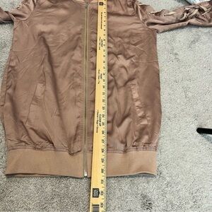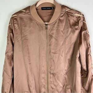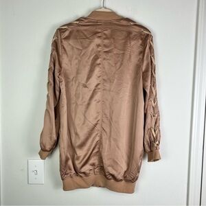 Missguided Carli Bybel Zip Front Jacket womens Size 8 rose gold satin