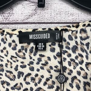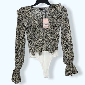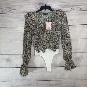 Missguided Chiffon Plunge-Front Cheetah Print Bodysuit Sz 4