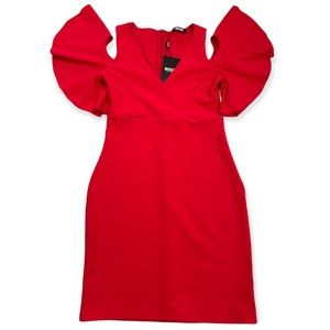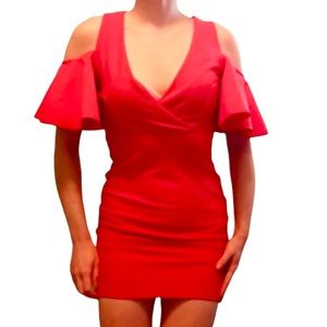 🍀Missguided Cold shoulder red ruffle bodycon dress