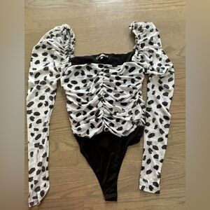 Missguided Dalmatian Print Polka dot Puff Sleeve Ruched Body Womens size 4 Small