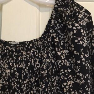 Missguided Ditsy Floral Shirred Puffed Sleeve Square Neck Midi Dress in Black