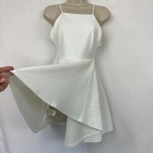 Missguided Dress Womens 4 Ivory Skater Short Mini Spaghetti Strap Sleeveless New