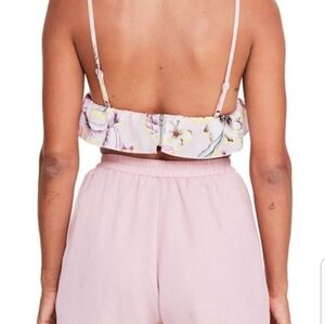 Pink and white floral crop top. Ruffles. Spaghetti straps. Brand new with tags. Excellent condition.