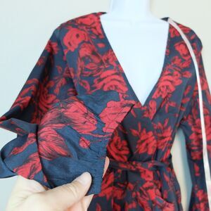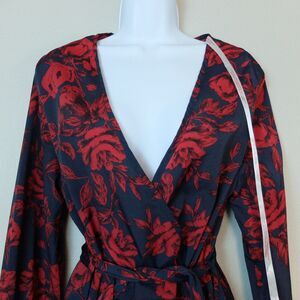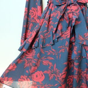 Missguided Frill Waist V Neck Smock Dress Deep Green Floral Size 8
