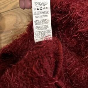Missguided Fuzzy sweater Small Burgundy Drop Back Oversized Acrylic & Feathers. Pre-owned in excellent condition. The pictures don’t do the sweater justice! It is a fabulous sweater with drop back and is very fuzzy.