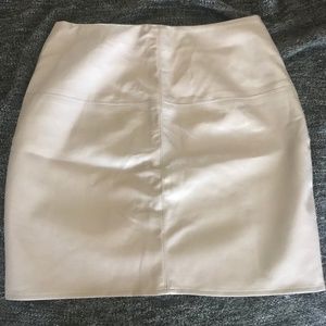 This is an amazing mini skirt by Missguided. It's listed as "gray" but it looks more beige than anything. Super versatile. The zipper is located in the back.