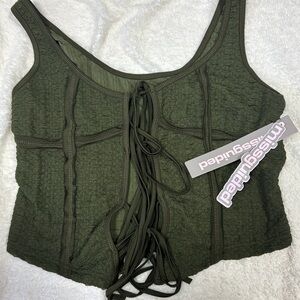 Elevate your style with this Missguided tank top, featuring a striking lace-up front and a fitted, smocked design. The sleeveless, green top is crafted from a ribbed knit material, offering a modern twist on a classic silhouette. Perfect for adding a touch of elegance to any casual ensemble.