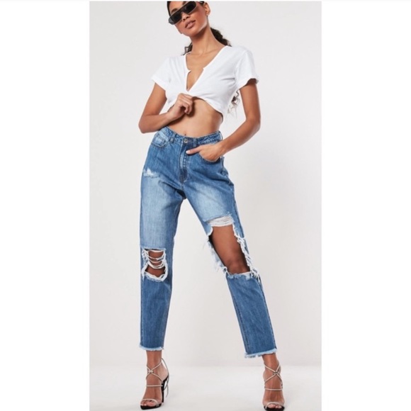 Missguided High Rise Distressed Riot Jeans