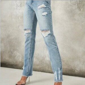 Missguided Ladder Hem Baggy Distressed Recycled Jeans, 6