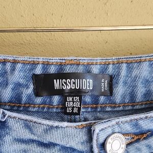 Missguided + Light Blue Distressed Straight Leg Jeans