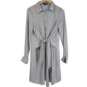 Missguided Long Sleeve Button Tie Front Shirt Dress Gray 8