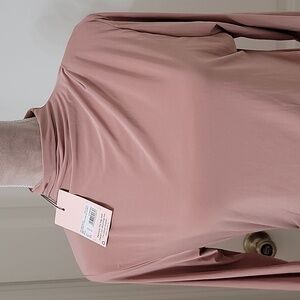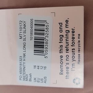 Missguided Maternity Size 12 Slinky Midi Dress in Blush. New with Tags! Gorgeous high neck bodycon style dress with long sleeves. A few pulls in the fabric (circled in photo). Please refer to measurements in photos to ensure proper fit